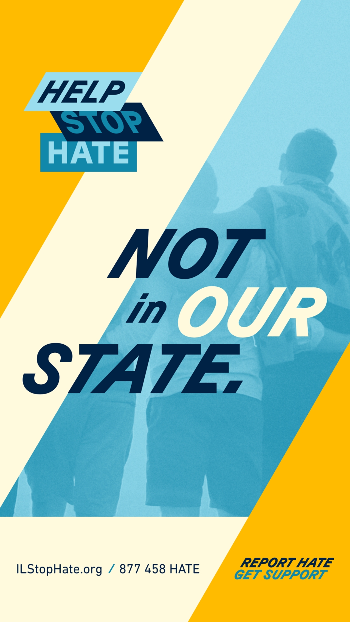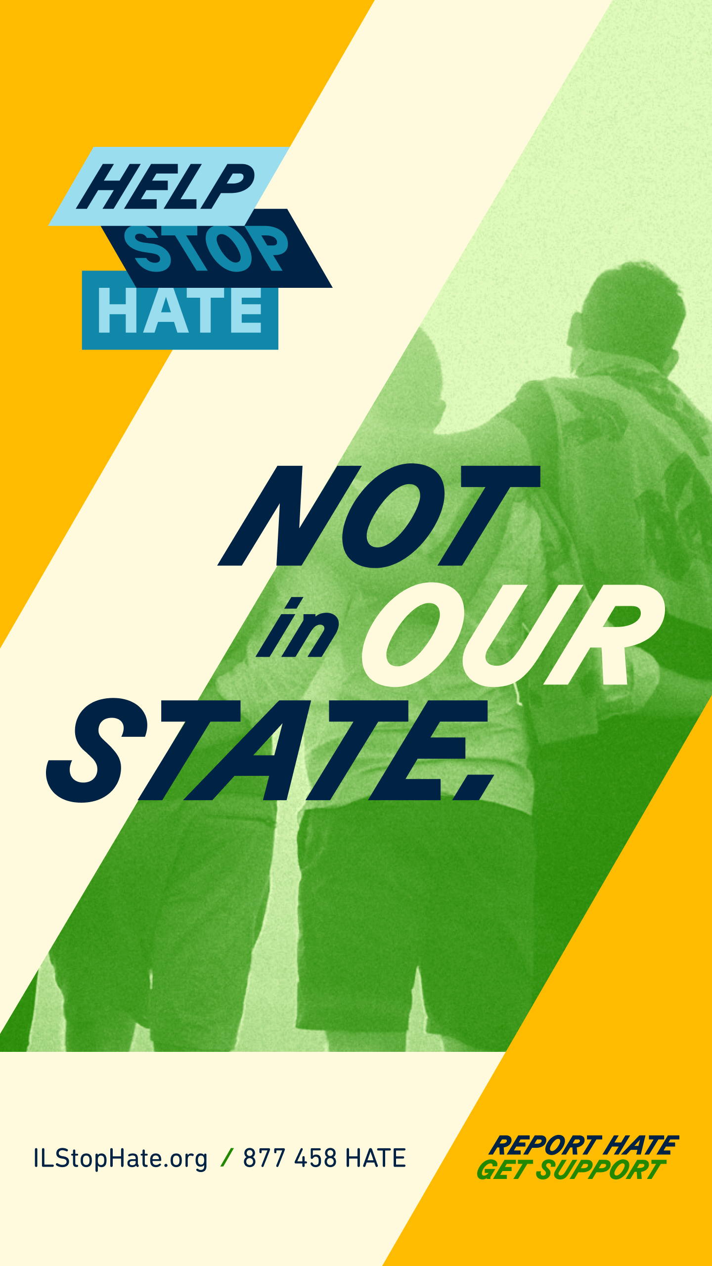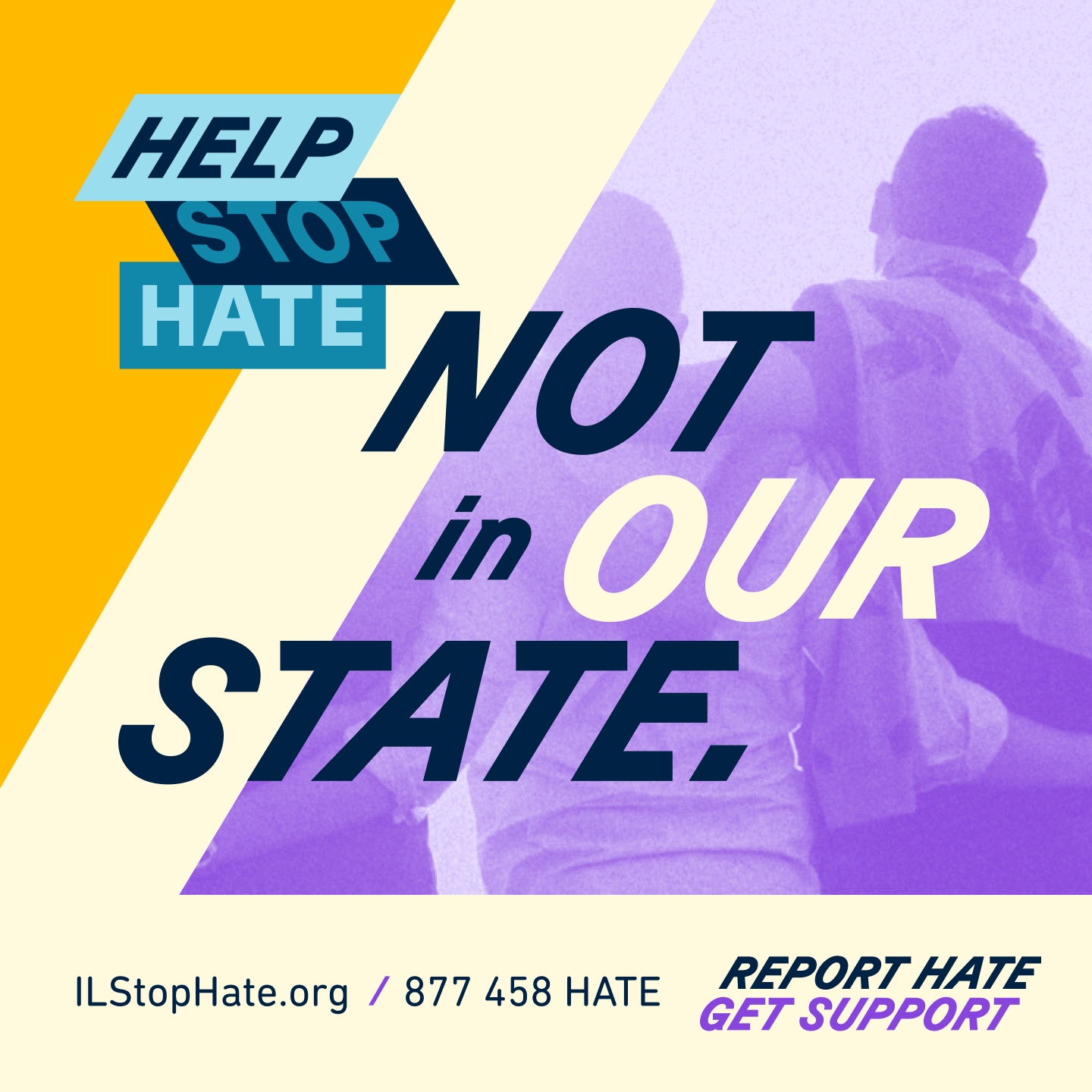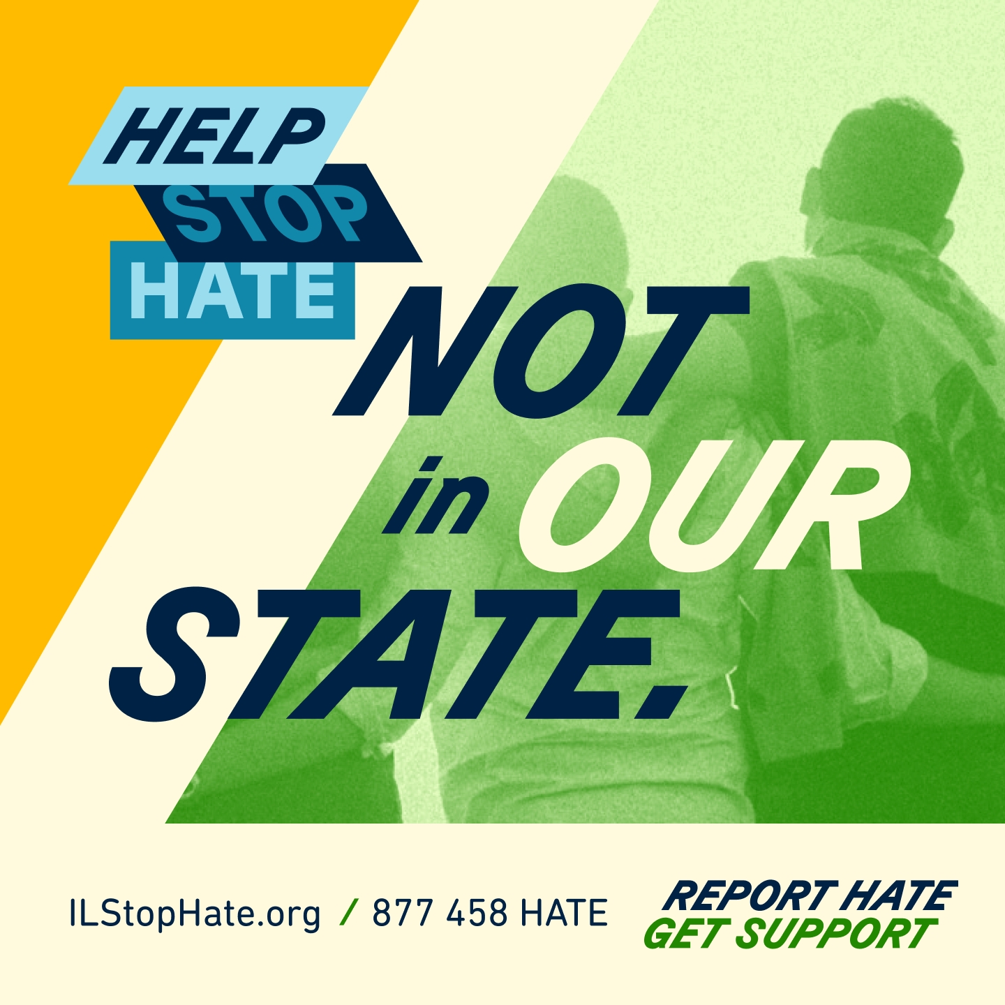 Not in our state. We stand united against discrimination and bias, ensuring every resident feels safe and valued. If you or someone you know has experienced hate, report it. Call (877) 458-HATE or visit ILStopHate.org.