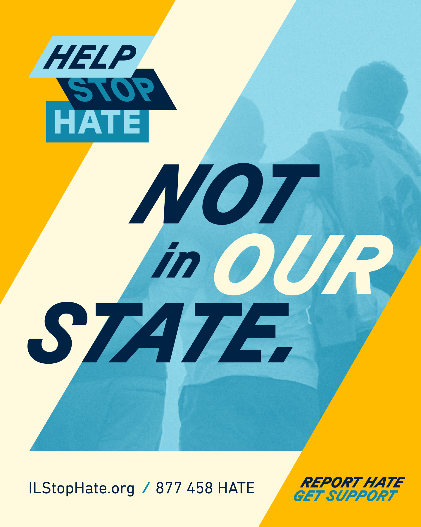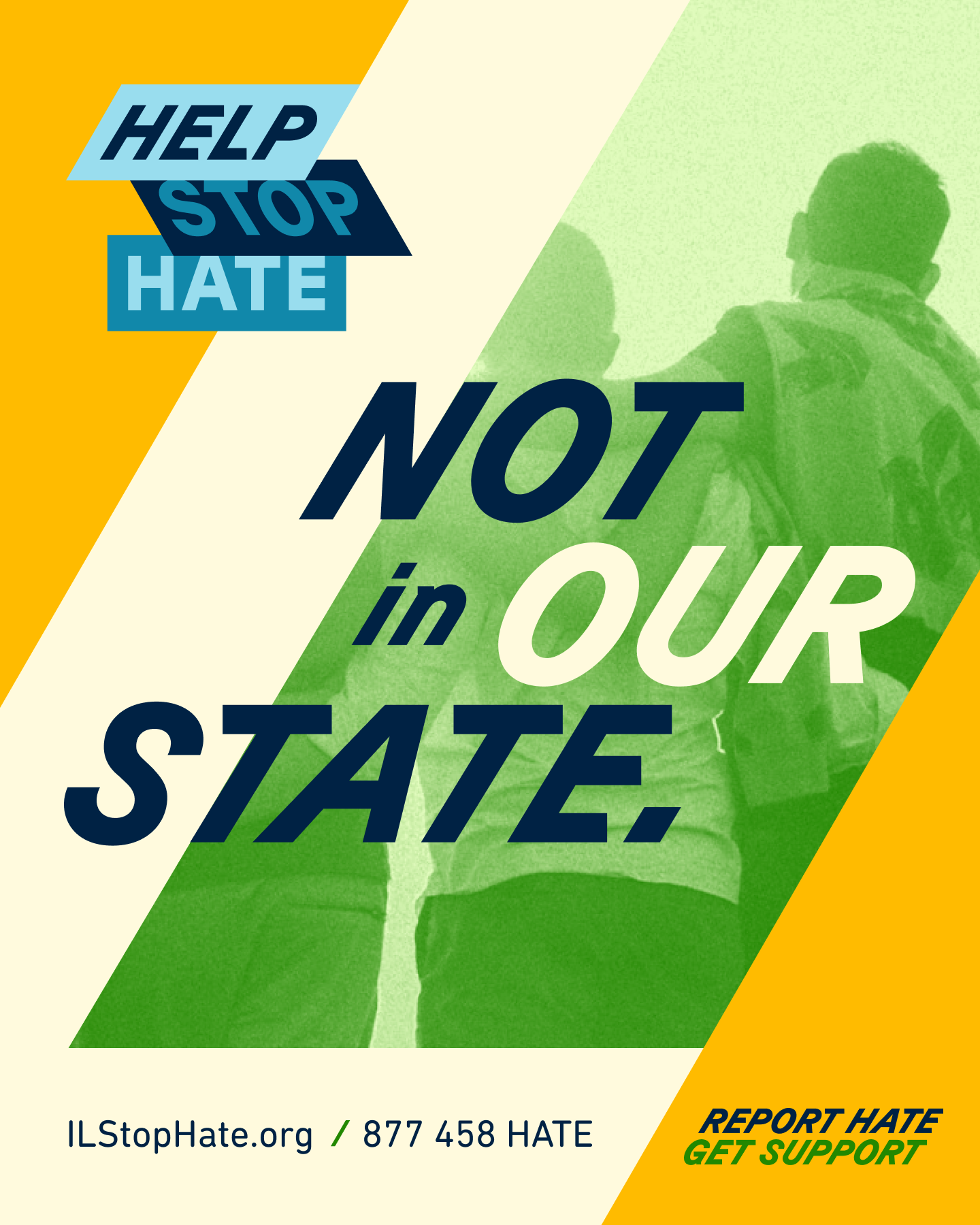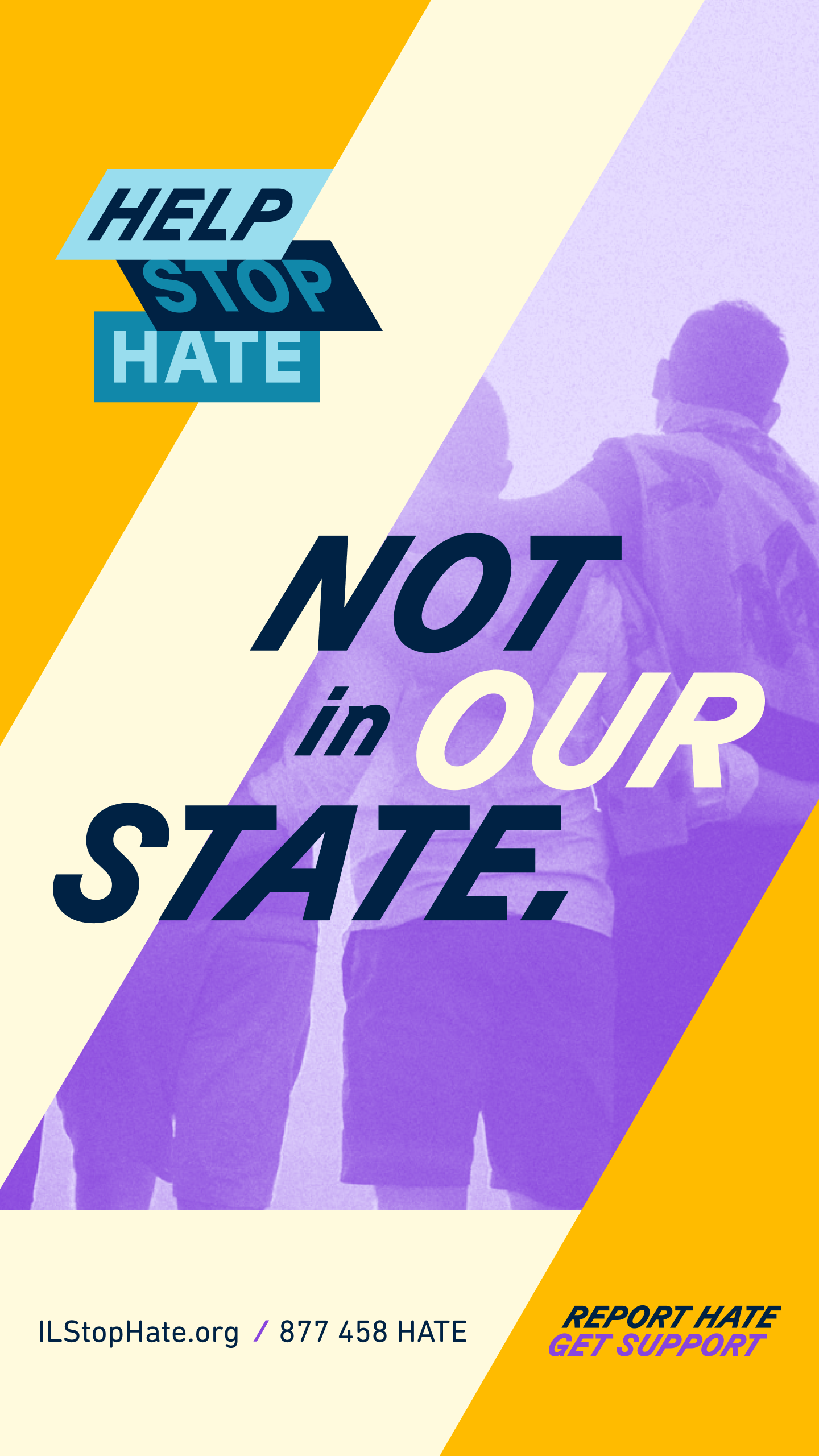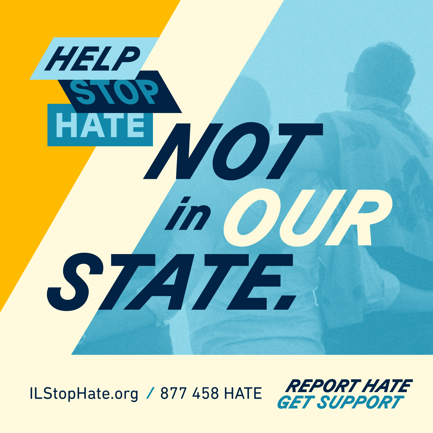 Not in our state. We stand united against discrimination and bias, ensuring every resident feels safe and valued. If you or someone you know has experienced hate, report it. Call (877) 458-HATE or visit ILStopHate.org.